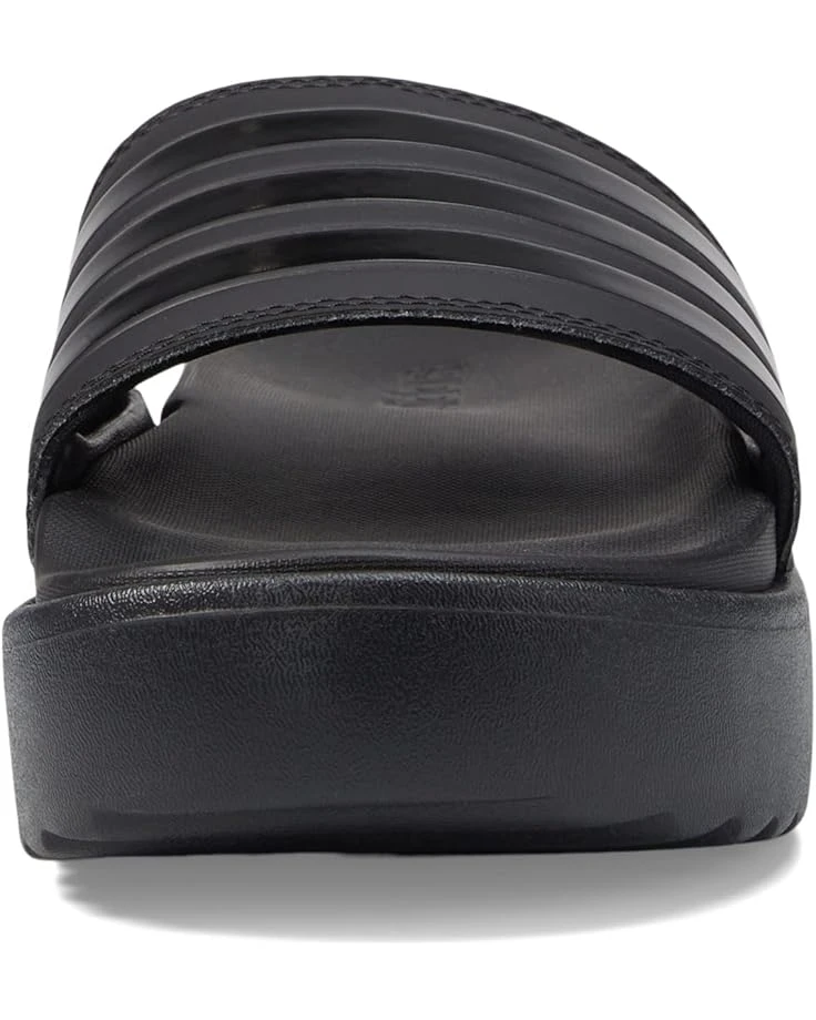 - Add some extra height to your pool-side look in these women’s platform slides from adidas. They feature all the elements of the classic Adilette, from the 3-Stripes bandage upper to the shaped footbed. The platform midsole provides a unique touch.