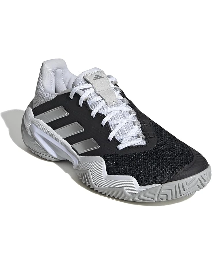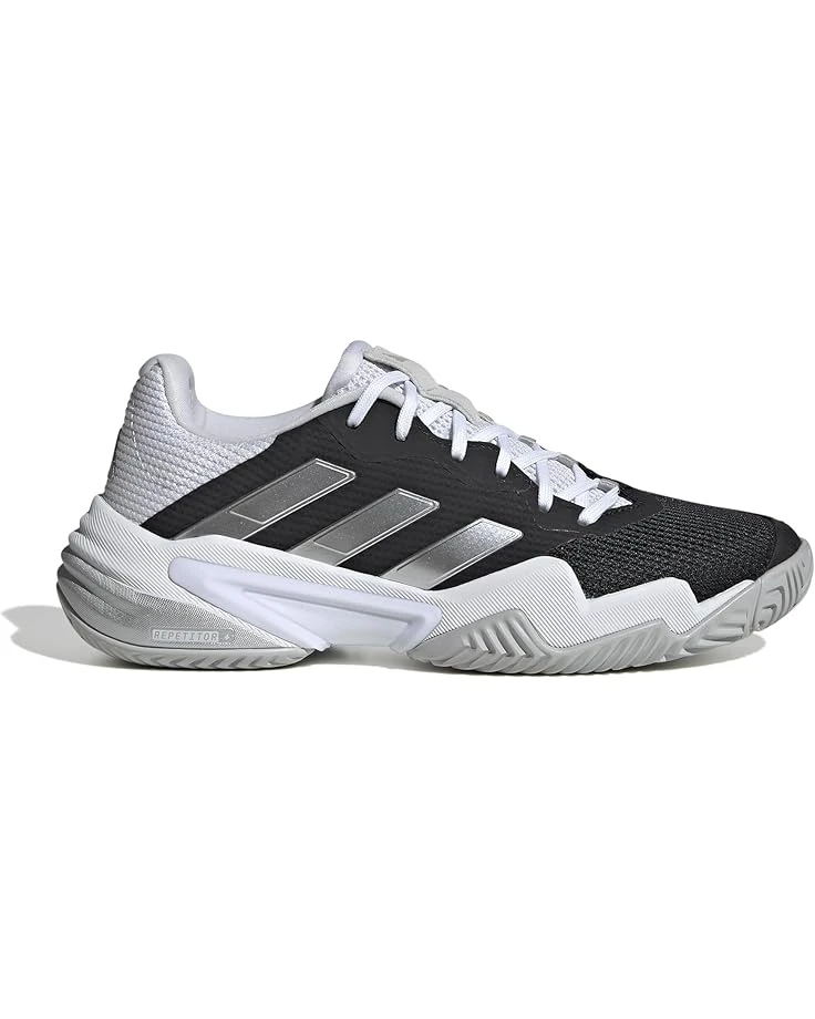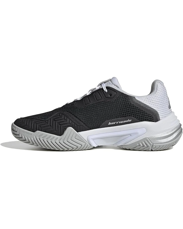 - Experience top performance on the court or get going for an evening jog by wearing the adidas® Barricade 13 shoes. The low-top sneakers have durable cushioning that helps protect against hard landings. The shoes have a three-strip pattern, round-toe design, lace closure, and intricate color-block laces. They have textile and synthetic upper, textile lining, and removable textile footbed for a comfortable wearing experience.