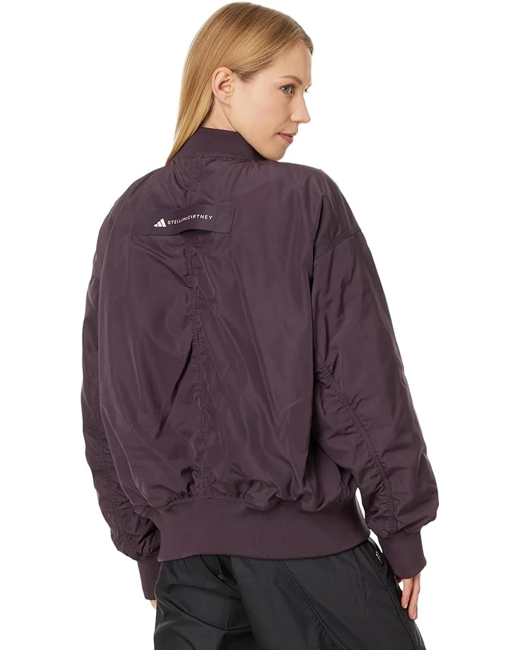 - The adidas® by Stella McCartney™ adidas by Stella McCartney Sportswear Woven Bomber Jacket IW9891 completes your look with a chic yet flamboyant flair. This wind-resistant jacket features a ribbed collar, long sleeves with rib-knit cuff, and zippered front closure.
