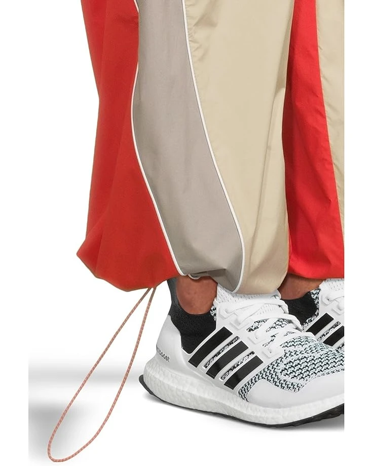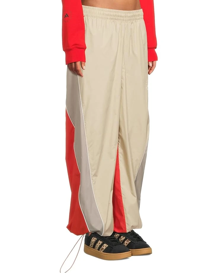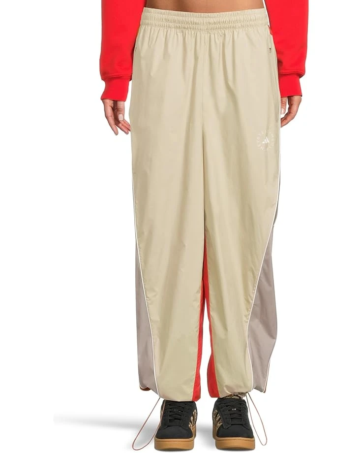 - Experience excellent freedom of movement along with a cool style wearing adidas® by Stella McCartney™ Track Pants JI5135. The high-waisted, loose-fitting tracksuit pants feature a mid-rise elasticated waistband with an adjustable drawcord, zip pockets for secure storage, a water-repellent finish, a chic circular logo detail, and adjustable ankle cuffs.