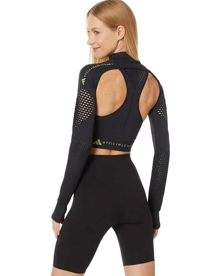 - Experience yoga like never before wearing adidas® by Stella McCartney™ adidas by Stella McCartney TrueStrength Knit Yoga Tank Top JE4085. This fitted top is expertly crafted with comfort and enhancing cutlines in mind. It features a mock neckline, long sleeves, and a straight hem. Functional features include a seamless design, detachable sleeves, thumb holes, and an open back design for a touch of style.