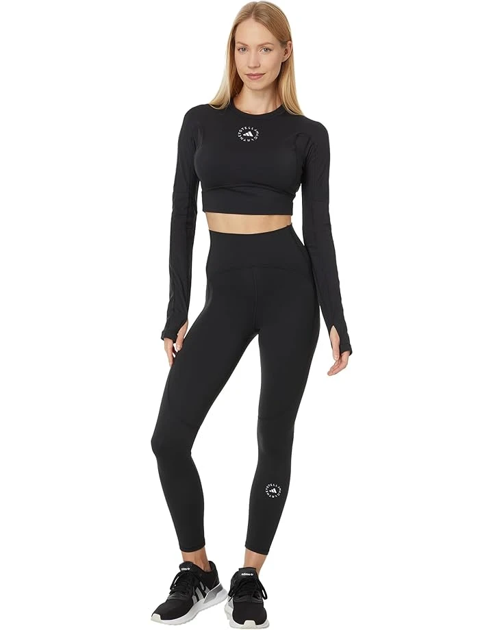 - Experience the perfect fusion of style and functionality with the adidas® by Stella McCartney™ TrueStrength Yoga Cropped Longsleeve Top. This tight-fitted crop, made in part with recycled materials, is designed to enhance your yoga sessions with body-enhancing cutlines and comfortable materials. Featuring an open back design, thumb holes for added comfort, and AEROREADY technology for sweat management, it’s a must-have for any woman’s training wardrobe. The Stella linear logo adds a touch of sophistication to this high-performance piece. It features a crewneck design and a cropped silhouette.