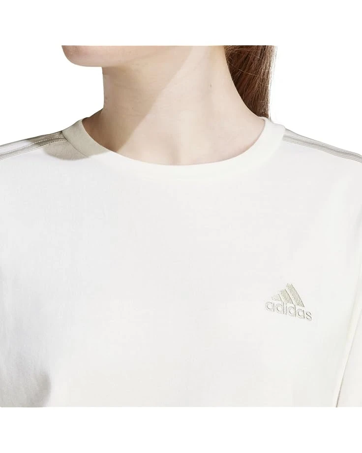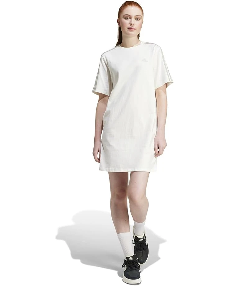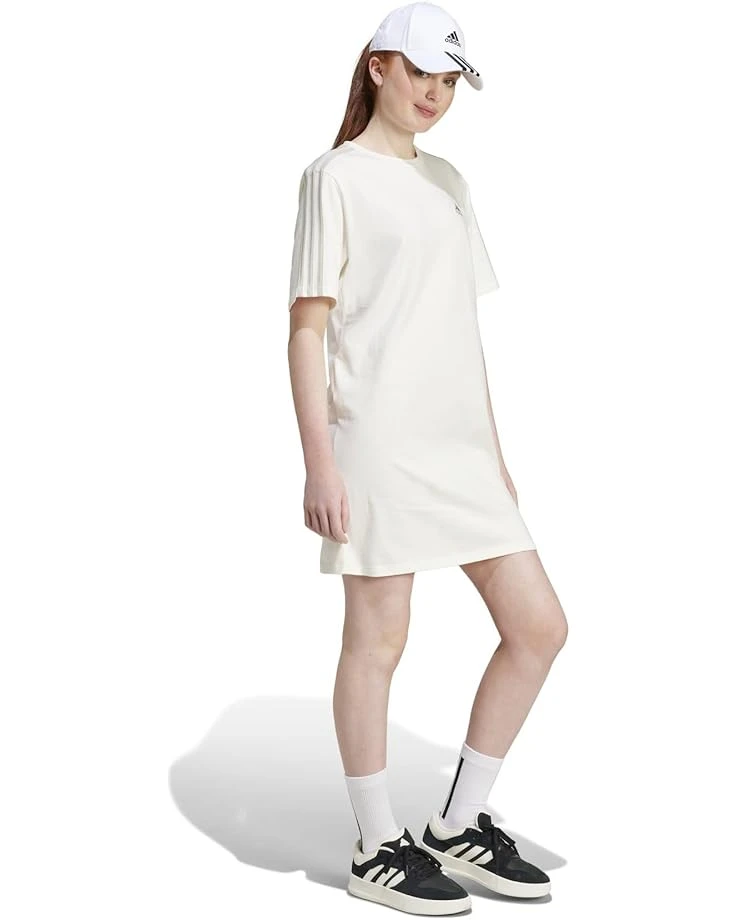 - Step out in style and exude a spoty vibe by wearing adidas® Essentials 3-Stripes Single Jersey Boyfriend T-Shirt Dress.