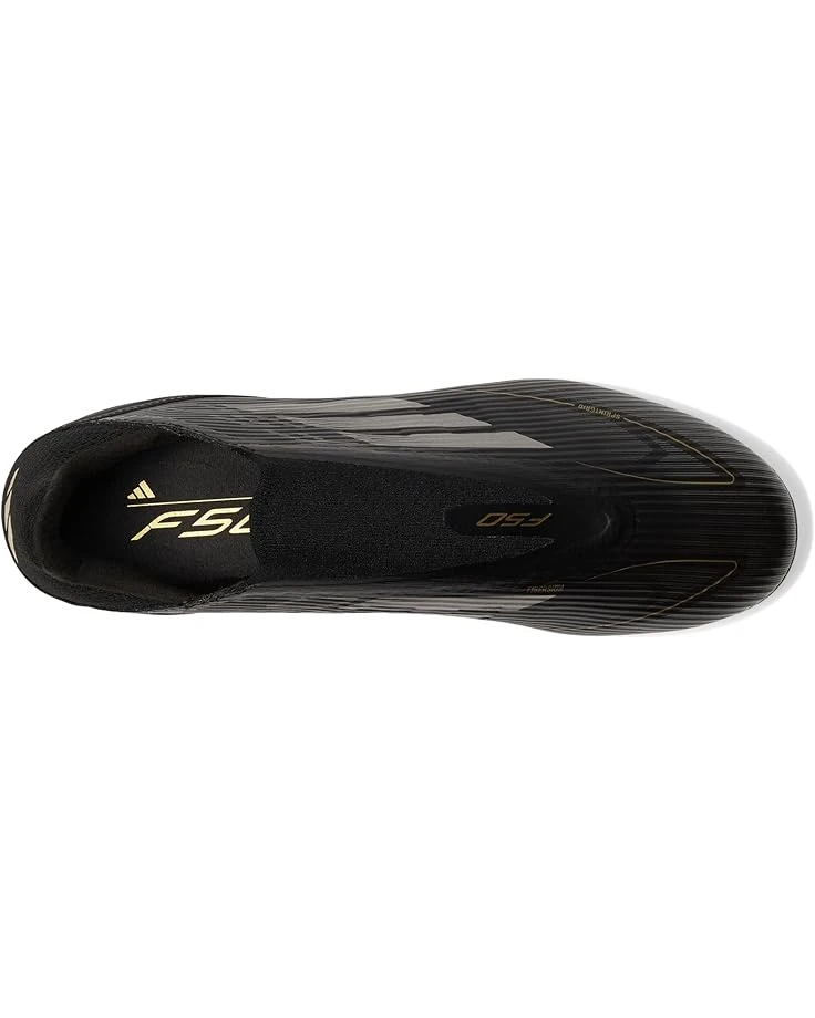 - When the goal’s in your sights, target perfection wearing the adidas® F50 League Laceless Football Boots Firm Sneakers. The laceless synthetic upper on these soccer cleats includes high definition texture across its strike zone and the cushioned insole offers lasting comfort. The mixture of debossed elements and raised print, helps you nail every pass and shot.