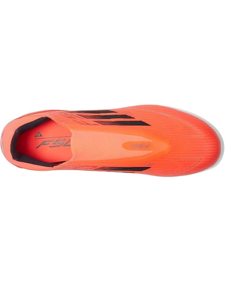 - Control + accuracy = confidence. When the goal’s in your sights, target perfection with the adidas® F50 League Laceless Football Boots Firm Ground. The laceless faux leather upper on these soccer cleats includes high-definition texture across its strike zone. A mixture of debossed elements and raised print, it’s there to help you nail every pass and shot. The cushioned insole and textile lining keep your feet cool and comfortable. Underneath, a specialist rubber outsole keeps you in boss mode on firm ground.