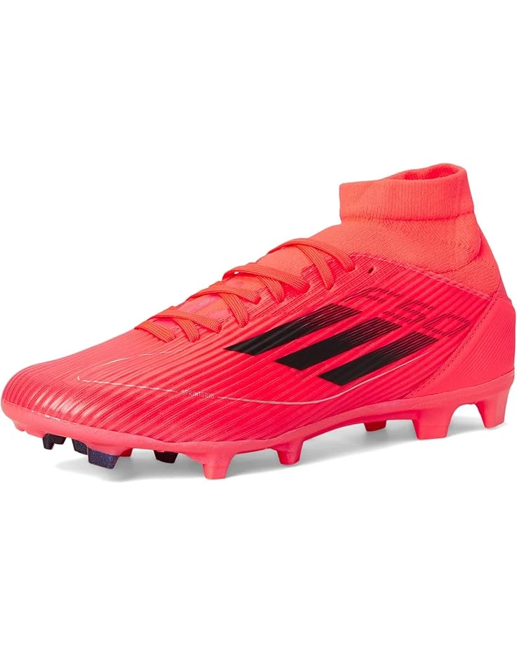 - The adidas® F50 League Mid Football Boots Firm Ground are designed to give a comfortable soft touch for winning tournament. They have polyester upper, textile lining, and engineered cushioned insole for comfort with every step. The round toe silhouette and soccer cleads give you an edge for weaving through opponents. A lace closure of the shoes is designed to offer secure fit.