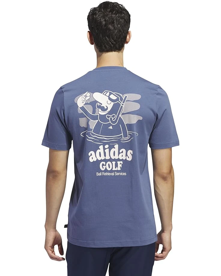 - Unleash your potential with this edgy graphics print adidas® Golf Ball Retrieval Short Sleeve Tee. This pullover tee features a ribbed crew neckline, short sleeves, left chest pocket with branding, and graphics print on the back.