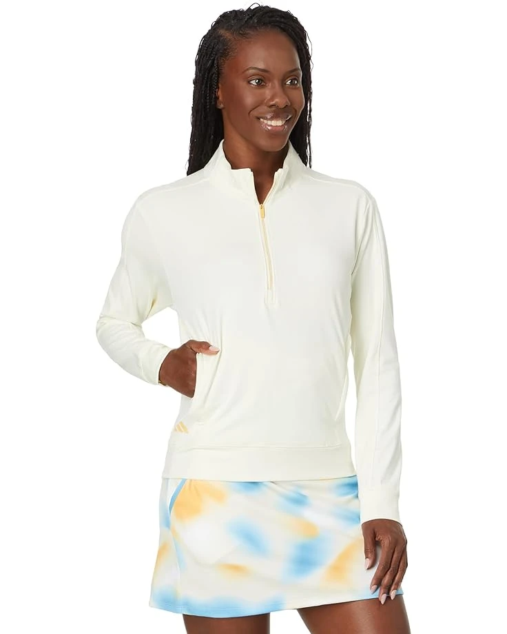 - Feel comfortable and stylish as you head out for a walk or a gym session wearing the adidas® Golf Ultimate365 1/4 Zip Pullover. The pullover has a stand collar neckline with a quarter zipper, long sleeves, front pockets, and a straight hem. The comfortable pullover is breathable and flexible that makes it perfect for prolonged wear.