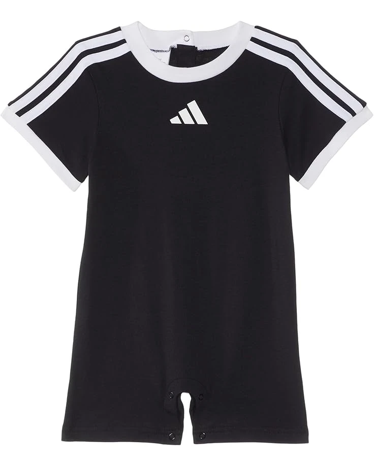 - Nothing beats the ease and adorable look of a romper. The adidas® Kids 3S Logo Romper will have your little one making the first moves in comfort and style. Convenient access features make a busy parent’s life easier. Your young athlete will start out with icon status. The regular fit romper features a ribbed crew neckline, short sleeves, and a flat front.