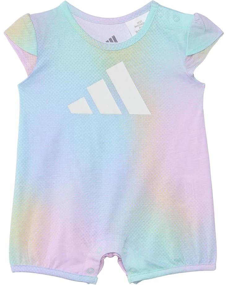 - Dress your little champion in the adidas® Kids AOP Shortie Romper, where comfort meets cuteness in a sporty one-piece wonder! Designed for all-day play, this regular-fit romper features a flat front and pull-on design for effortless wear. The snap closure on the gusset makes diaper changes a breeze, giving parents one less thing to worry about. Whether she’s crawling, toddling, or taking her first big steps, the soft fabric keeps her moving with ease. Adorned with playful adidas details, this romper blends athletic energy with everyday charm-because the best adventures start with style and comfort!