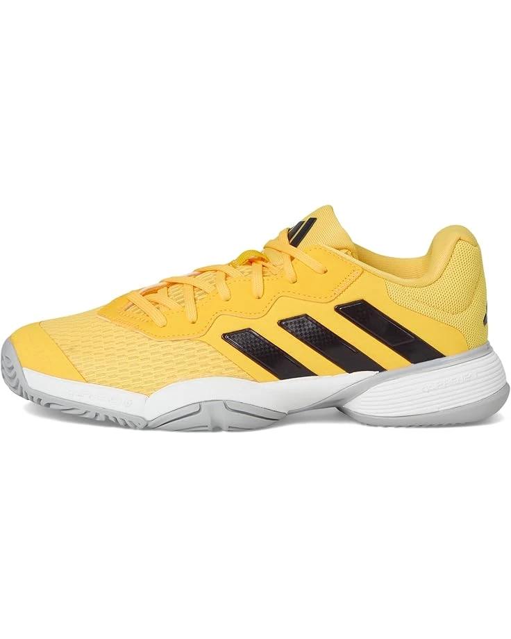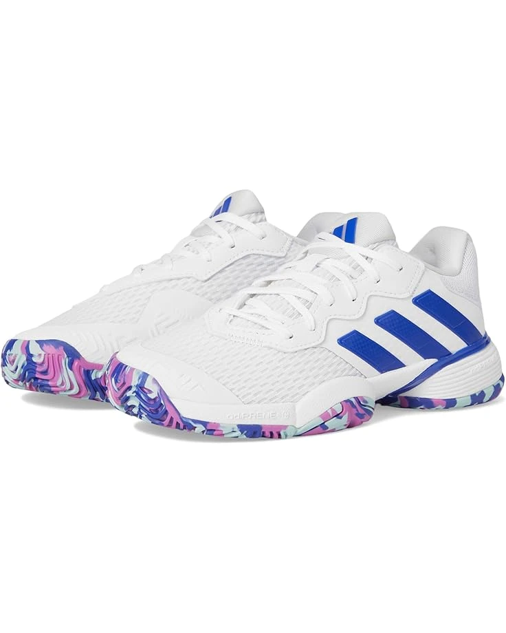 - Add a sporty touch to your looks wearing adidas® Kids Barricade Tennis Shoes, designed with contrasting three-stripe branding. The low-top sneakers feature a faux leather upper, synthetic rubbber lining, and cushioned lining. The lace-up design on the sneakers offers easy adjustability.