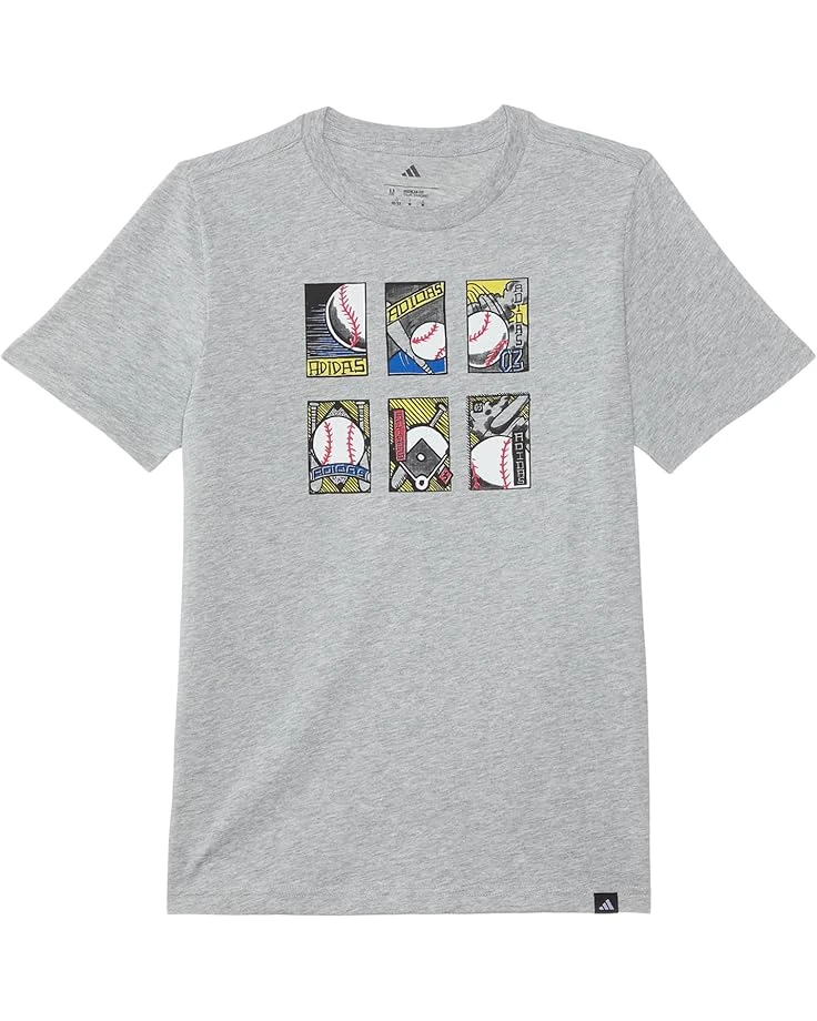 - Wear your baseball card collection when you pull on this adidas® Kids Baseball Card Heather Tee. Illustrated designs give this adidas tee a hand-drawn look. Silky soft, he’ll want to wear it every day. No problem. It’s washable. It features a crew neckline, short sleeves, and a straight hem.