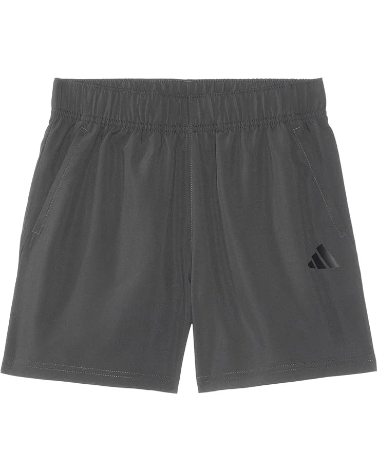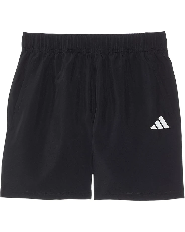 - No matter what the day has in store, your kid is ready for it wearing the adidas® Kids Essentials Small Logo Woven Shorts. Made from polyester plain weave woven fabric, these pull-on shorts feature a drawcord-adjustable waistband that makes them comfortable for fun and games. A 3 Bar logo on the hip adds a touch of adidas® style. These mid-rise shorts are an ideal choice for your everyday wear.
