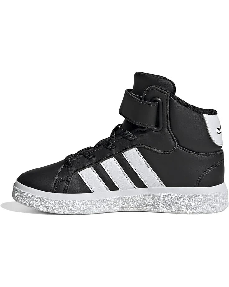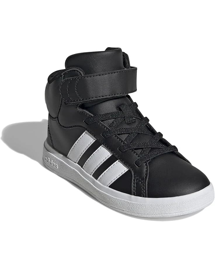 - Let your kiddo enjoy a fun and comfortable playtime wearing the adidas® Kids Grand Court Mid Shoes. The rounded toe footwear features faux leather upper construction with lace-up closure and adjustable hook-and-loop strap for a snug fit.