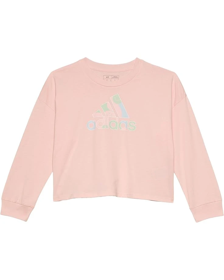 - Amp up the casual style game effortlessly wearing adidas® Kids Long Sleeve Waist Crew Tee. The loose-fit, waist-length tee features a crew neck, long sleeves with banded cuffs, adidas® logi print on the chest, and a straight hem.