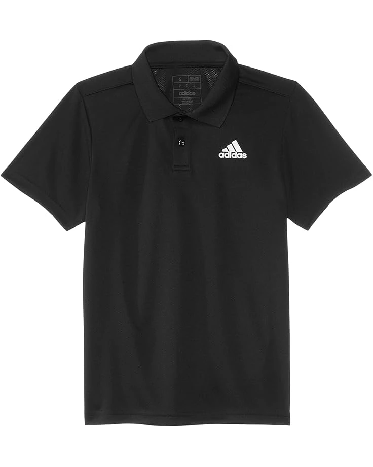- The adidas® Kids Poly Mesh 3S Polo features a rib knit collar and a quarter-length buttoned placket for easy wear. This polo shirt is made from a polyester closed-hole mesh fabric that offers enhanced comfort and breathability. The short sleeves and straight hem add to its style. This collared polo also has a heat transfer adidas® Sportswear logo on the left chest and screen-printed floating 3-Stripes on the center back.