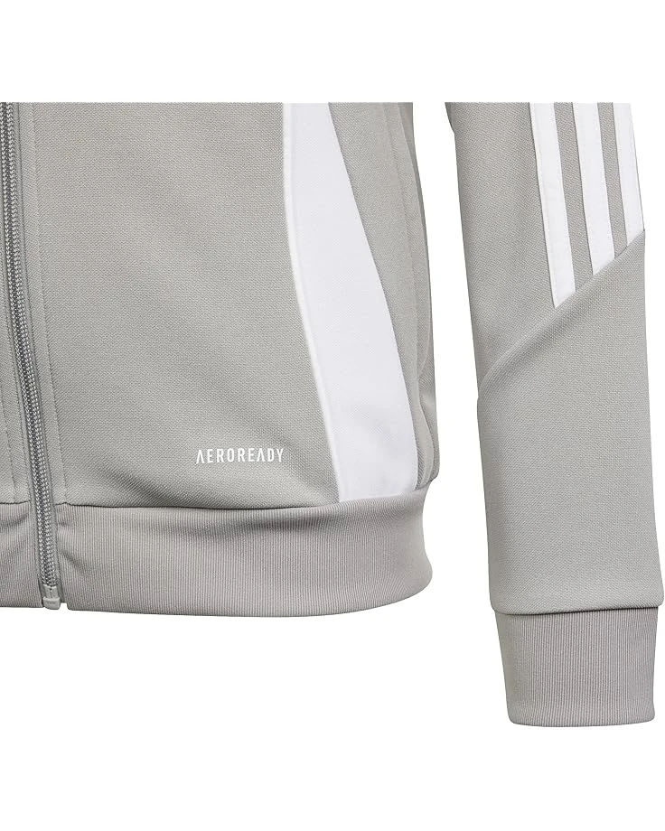 - Crafted from polyester double-knit fabric that offers long-lasting comfort, the adidas® Kids Tiro24 Training Jacket is designed for your kid’s training sessions and football matches. The zippered front closure of the jacket offers easy wear. Featuring AEROREADY technology that wicks away moisture, this zip-up jacket keeps your kid dry and comfortable. The ribbed cuffs and hem offer a snug fit. This kid’s jacket comes with long sleeves, a straight hem, and a stand-up collar. Get your kid ready for his football matches by wearing this stylish jacket.