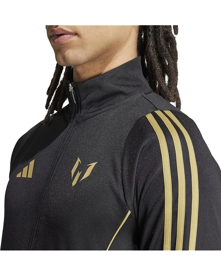 - Layer up for your outdoor runs and training sessions wearing the adidas® Messi Tracksuit Jacket. Crafted from polyester fabric, it offers long-lasting comfort and durability. This track jacket is styled with long sleeves, a collared neckline, a straight hem, and a zippered front closure. The AEROREADY fabric of the jacket pulls sweat away from the skin to keep you dry while the ribbed cuffs and hem ensure a snug fit. Get ready for a comfortable day out wearing this zip-up jacket.