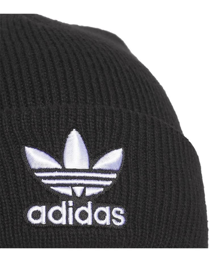 - This adidas® Originals Trefoil Beanie keeps out the chill on cold days and nights. It’s made of cozy knit and features a fold-over cuff. Adidas Trefoil embroidery detailing finishes the look.