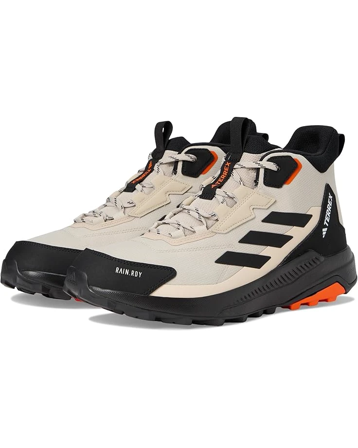 - Get ready for your backpacking adventures with the comfortable adidas® Outdoor Terrex Anylander Mid RAIN.RDY Hiking Shoes. Featuring a durable textile upper and a round toe shape, these lace-up shoes are designed for both comfort and protection. The heel pull tab ensures easy step-in, while the waterproof construction keeps your feet dry in wet conditions.