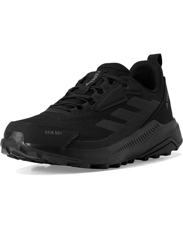 - Stride through storms, conquer new trails! Step into adventure wearing the adidas® Women’s Terrex Anylander Rain.RDY Hiking Shoes-your ultimate companion for all-weather exploration. Featuring a durable textile upper and natural rubber lining, these waterproof shoes are designed to keep your feet dry and comfortable, no matter the conditions. A mid-height cuff offers superior ankle support, while the cushioned midsole ensures lasting comfort for long treks. The gusseted tongue and RAIN.RDY technology block out the elements, and the Traxion rubber outsole delivers unbeatable grip on any terrain. Plus, with eco-conscious materials, you’re making a step toward a more sustainable future.