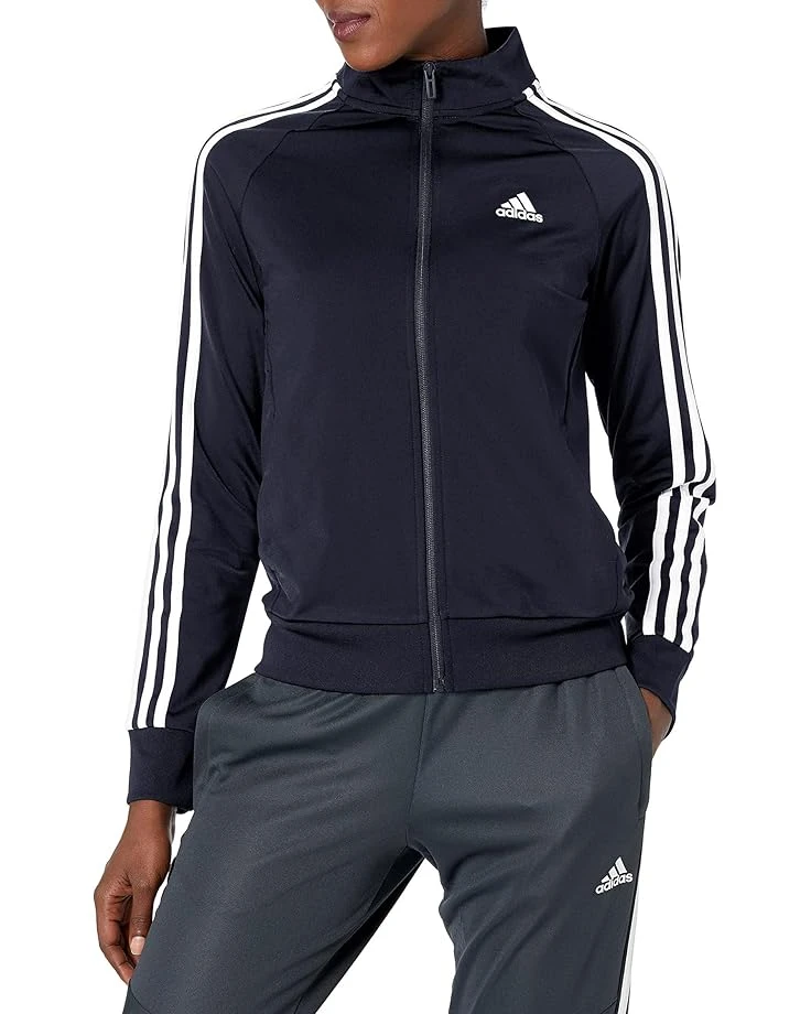 - The adidas® Plus Size Essentials Warm-Up 3-Stripes Track Jacket is the perfect addition to your activewear collection. This jacket features a stand-up collar, ensuring extra protection against chilly winds. The long Raglan sleeves provide a comfortable and unrestricted range of motion. With its ribbed cuffs and hem, the jacket offers a snug fit that stays in place throughout the day.